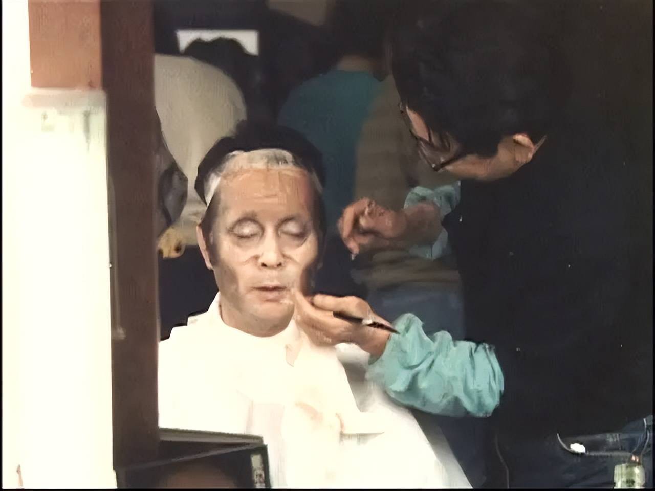 然而化妆已经很难熬了,偶尔还会出状况,据仲代达矢自己回忆,曾有过4个小时化好妆了,可导演黑泽明来了说今天不拍,原因是他宿醉状态不好,仲代达矢气的自己把脸上的妆扯掉,本来脸上都涂满了胶水。