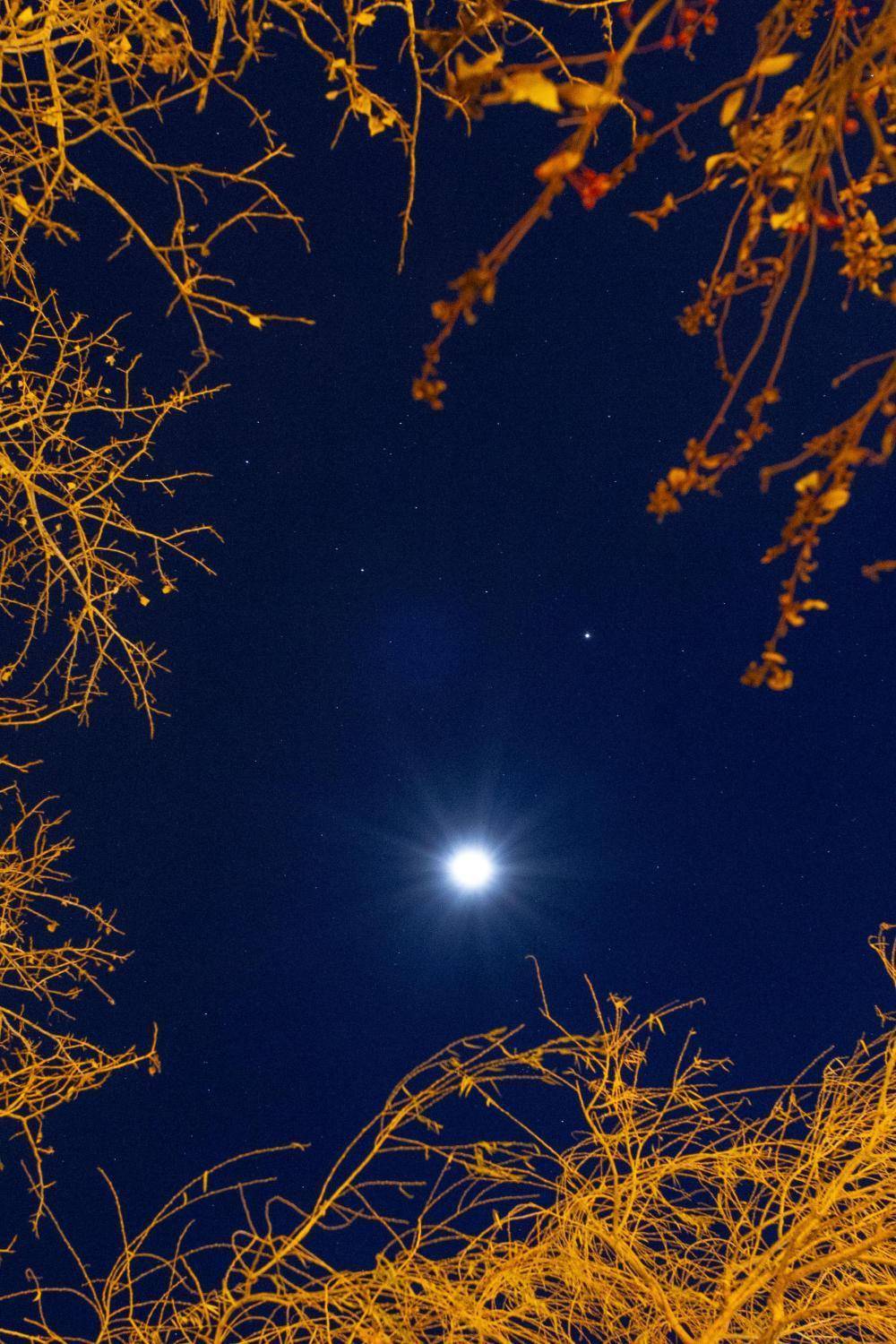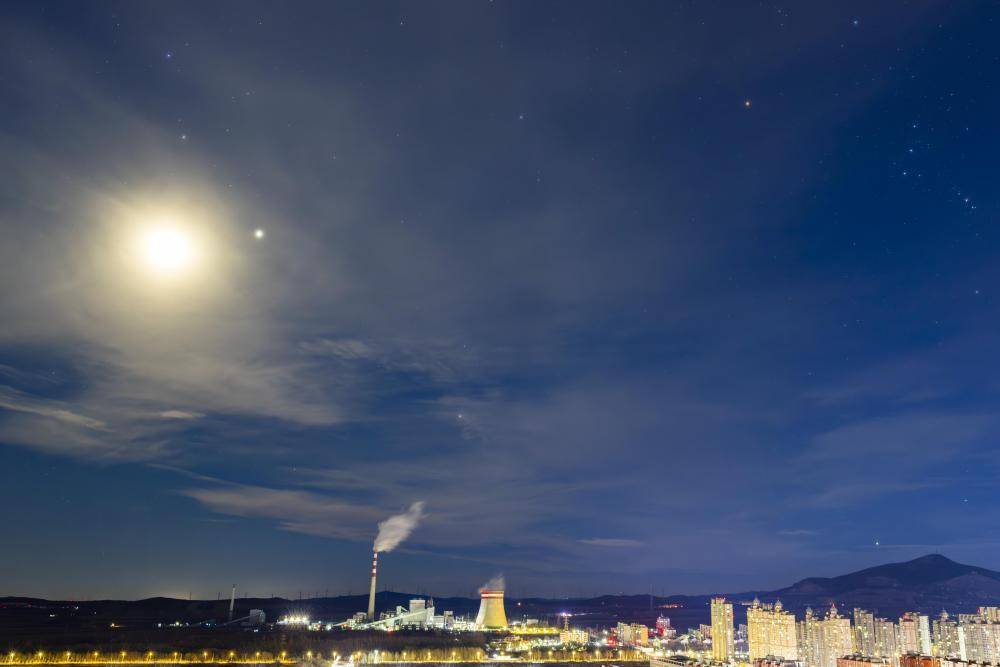 11月10日在黑龙江省北安市拍摄的“双星伴月”。新华社发(钱泊羽摄)