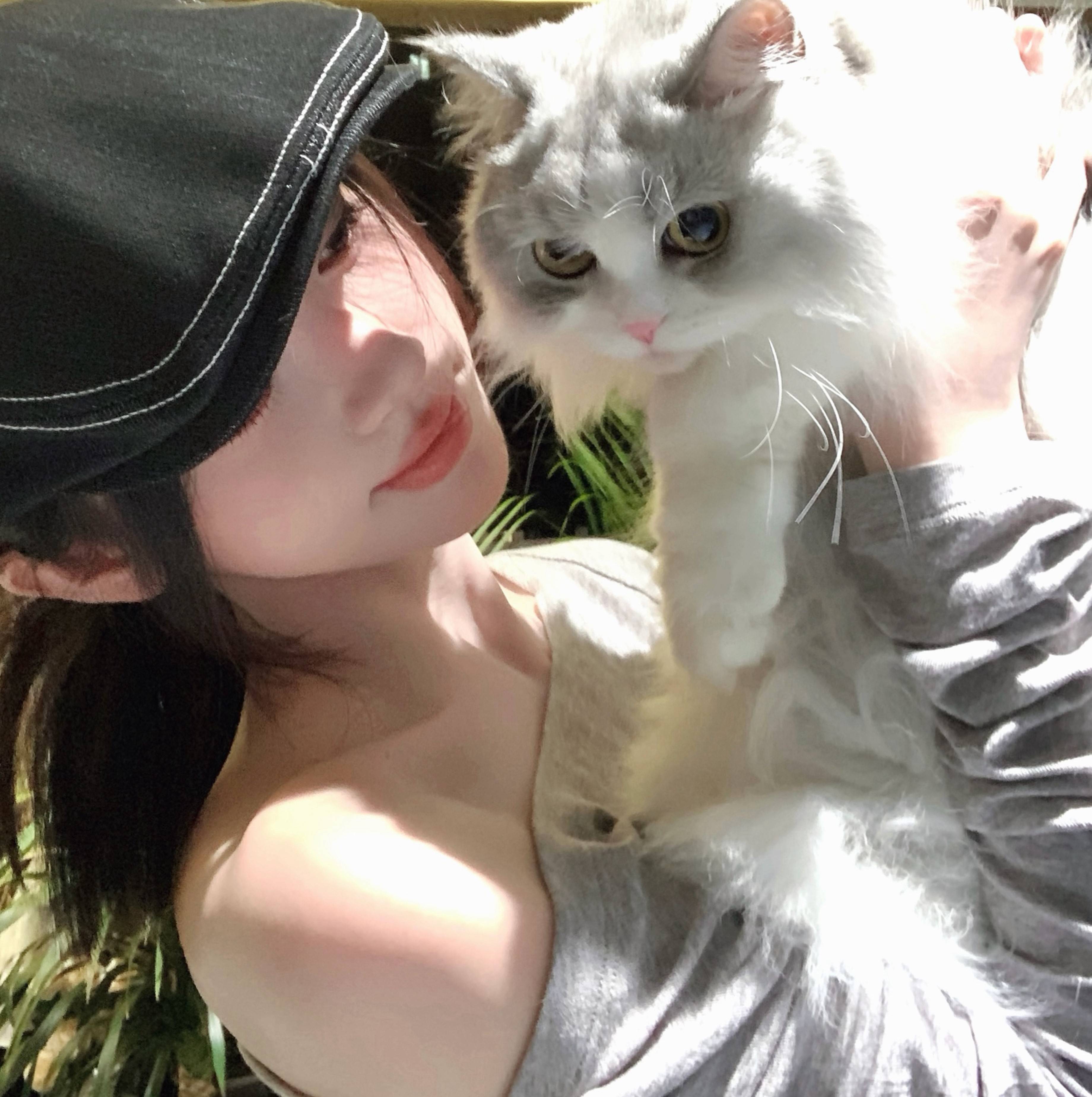 鞠婧祎抱着小猫,气质温柔。