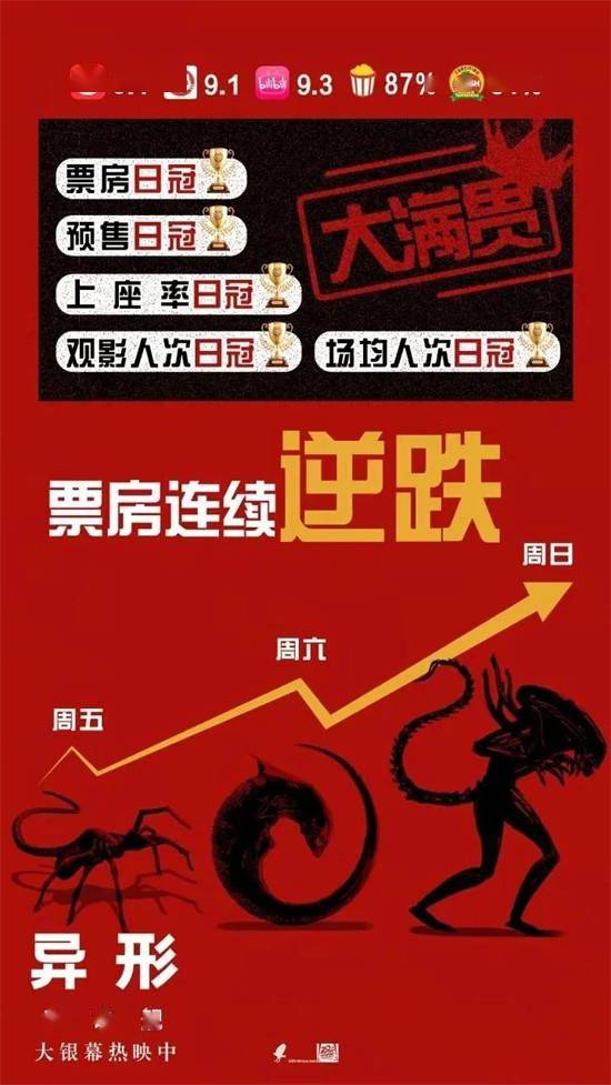 要知道,该系列上一部作品《异形:契约》在国内的票房为3.11亿,甚至该成绩已是目前中国电影市场中,海外恐怖题材电影的票房冠军。