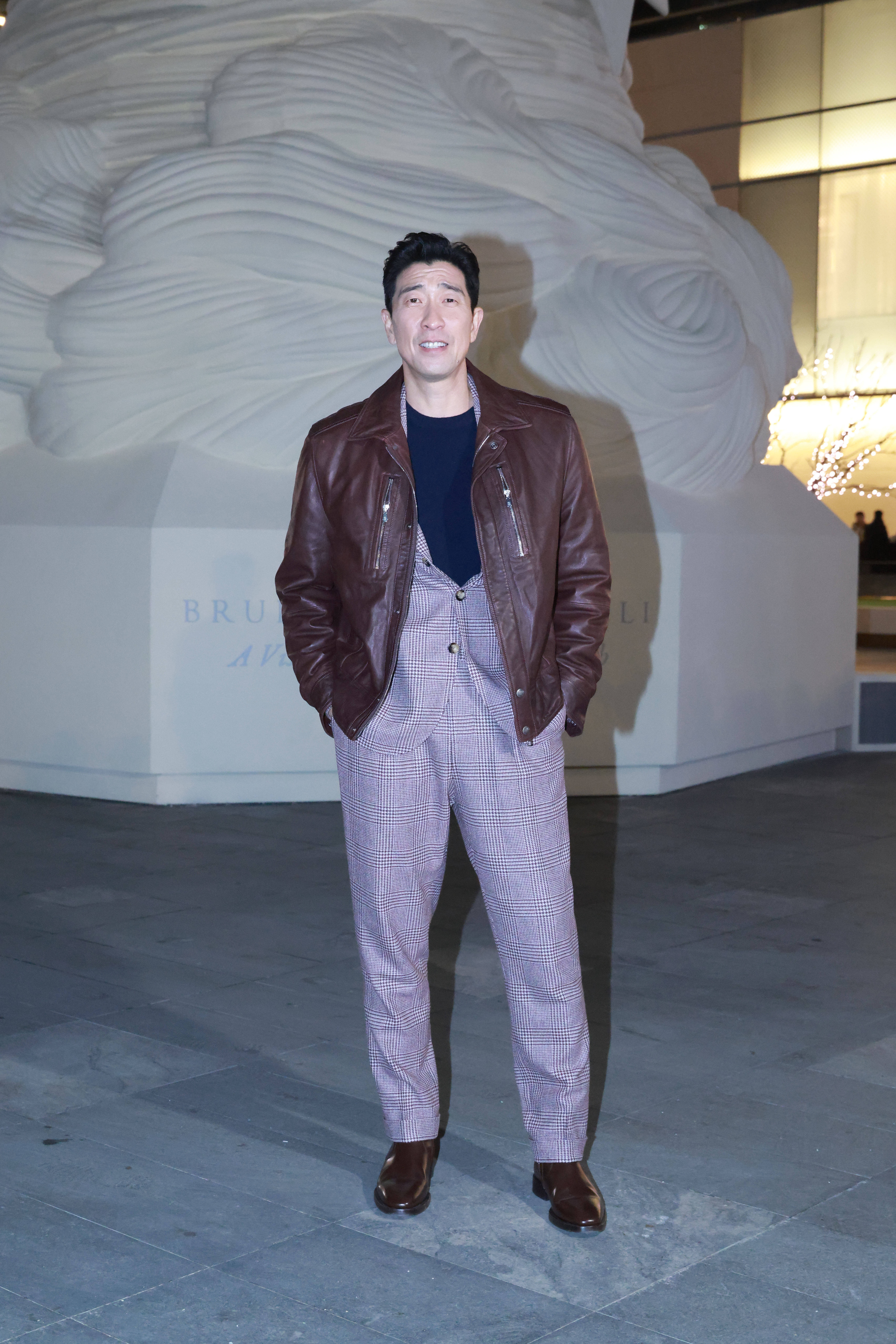 王千源以酒红色皮衣搭配西装造型示人,熟男魅力爆棚。