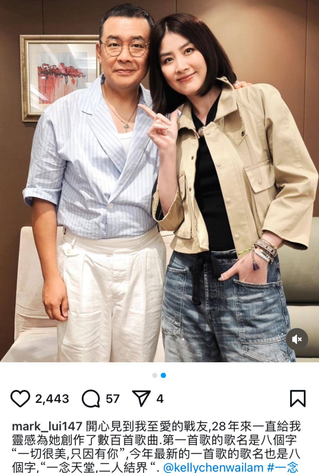 雷颂德过去几年晒出与友人的合照大多都是在英国,因为他在英国,也只能等着朋友去英国公干或是旅游的时候相聚。此次晒出与陈慧琳的合照拍摄点应该就是在香港,因为陈慧琳即将要在澳门举办演唱会,不可能还现身在英国,那么只有雷颂德返港与陈慧琳相聚。雷颂德在晒照后颇为感慨,毕竟已经很久没有与对方碰面了,他将陈慧琳称为战友,表示很开心见到对方,还感谢对方给予自己灵感创作,让他能源源不断地为对方创作,直到今天。