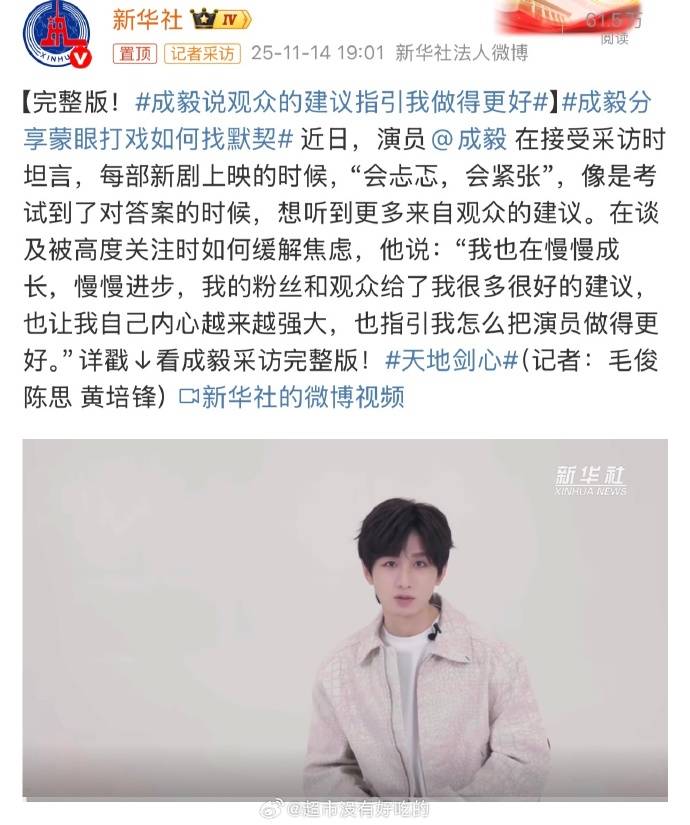 在这个追求速成的时代,成毅以其“三观正、人很真诚且虚心好学”的特质,坚守着演员的初心。他把观众的建议放在心上,在持续成长中完成着自我超越。当一位演员将紧张视为动力,将观众视为明镜,这或许正是演艺生涯能够历久弥新的核心密码,在艺术这条修行路上,敬畏心才是最好的引路人。