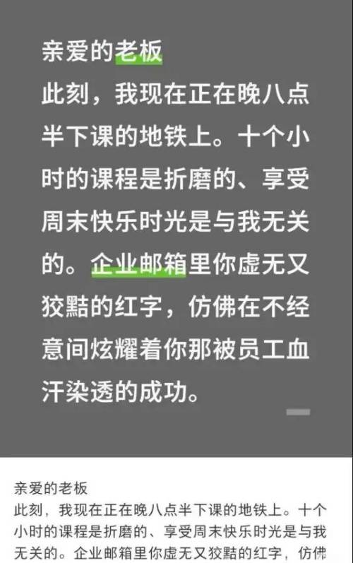 有网友统计,这封内部信全文提及17次“我”和5次“南极”,却对员工当下的工作压力鲜有提及。有员工直言,无法与正在旅游的老板共情,还有员工透露,32周年纪念日当天上完课后还要连夜加班做续课方案,看到信中对南极风光的描述“只觉得讽刺”。