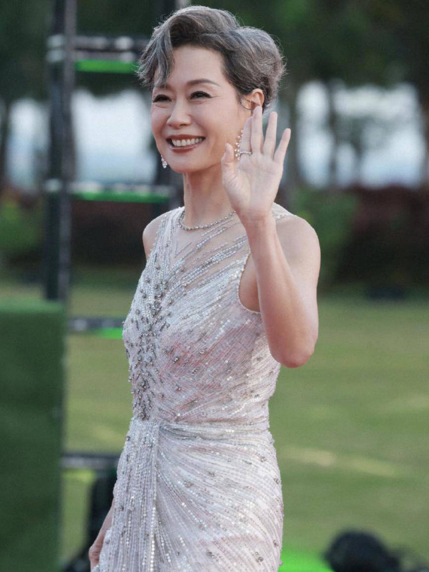 这次走红毯,叶童用一头银发配上一袭银色长裙,完美地展现出了她别样的魅力和气质。