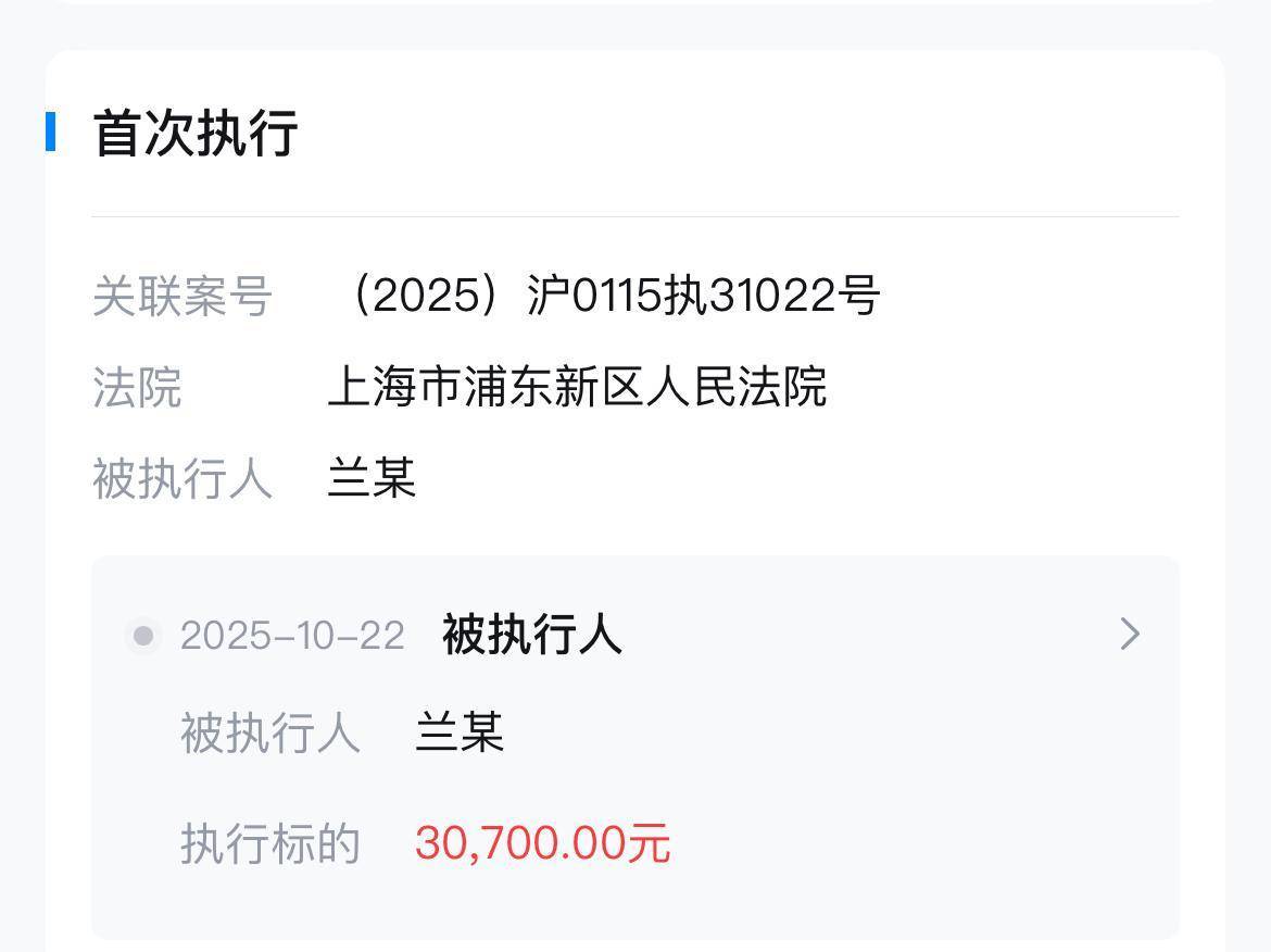 天眼查显示,在这起名誉纠纷案中,10月22日,兰世立被上海市浦东新区人民法院执行3万元。这意味着,在他支付1万元的第二天,他成为被执行人。