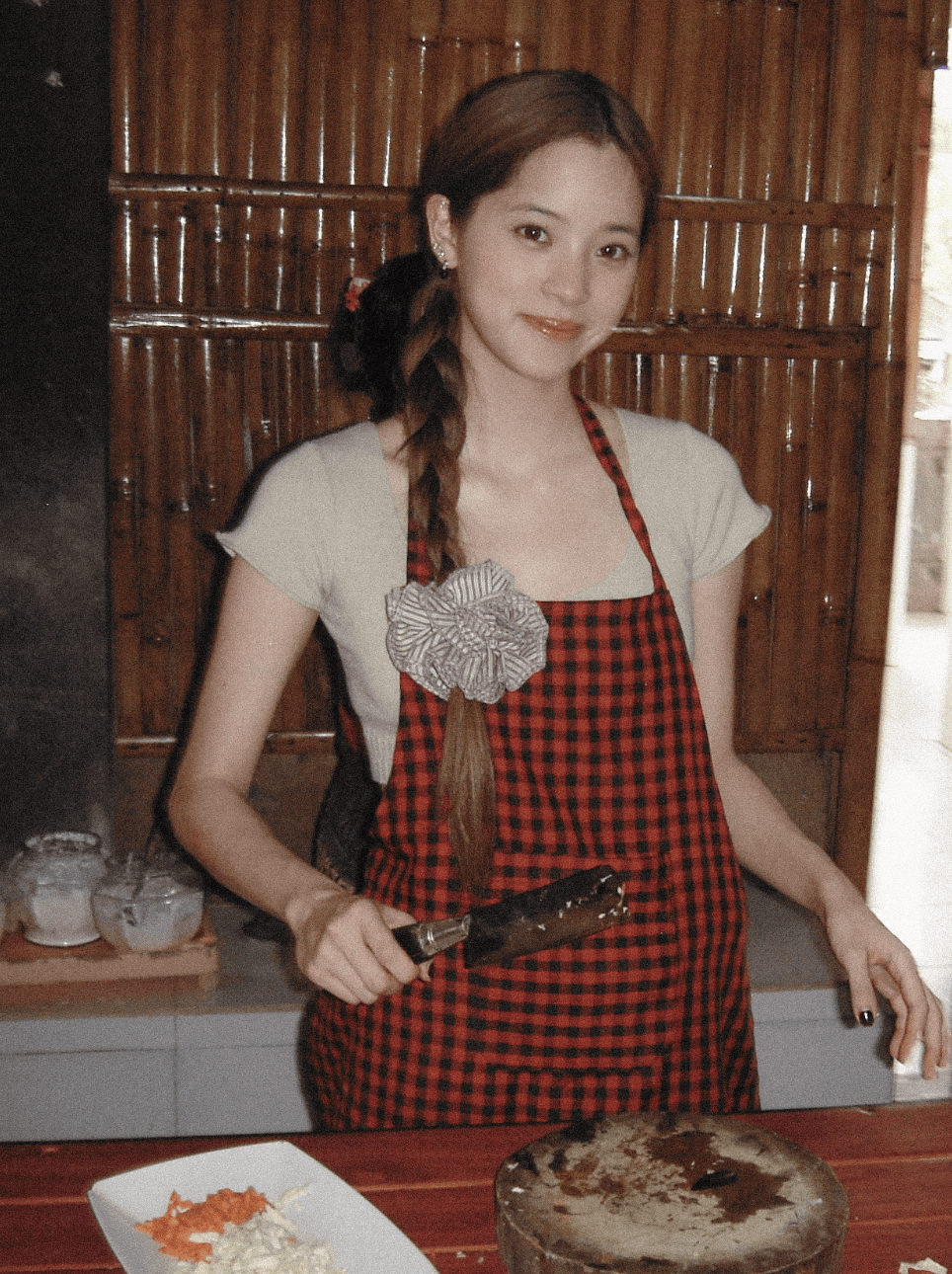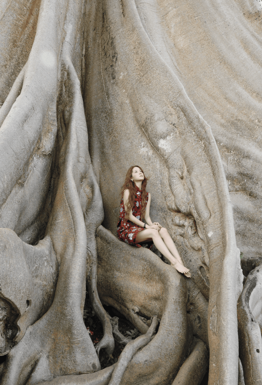欧阳娜娜坐在田间建筑中,感受大自然的力量。