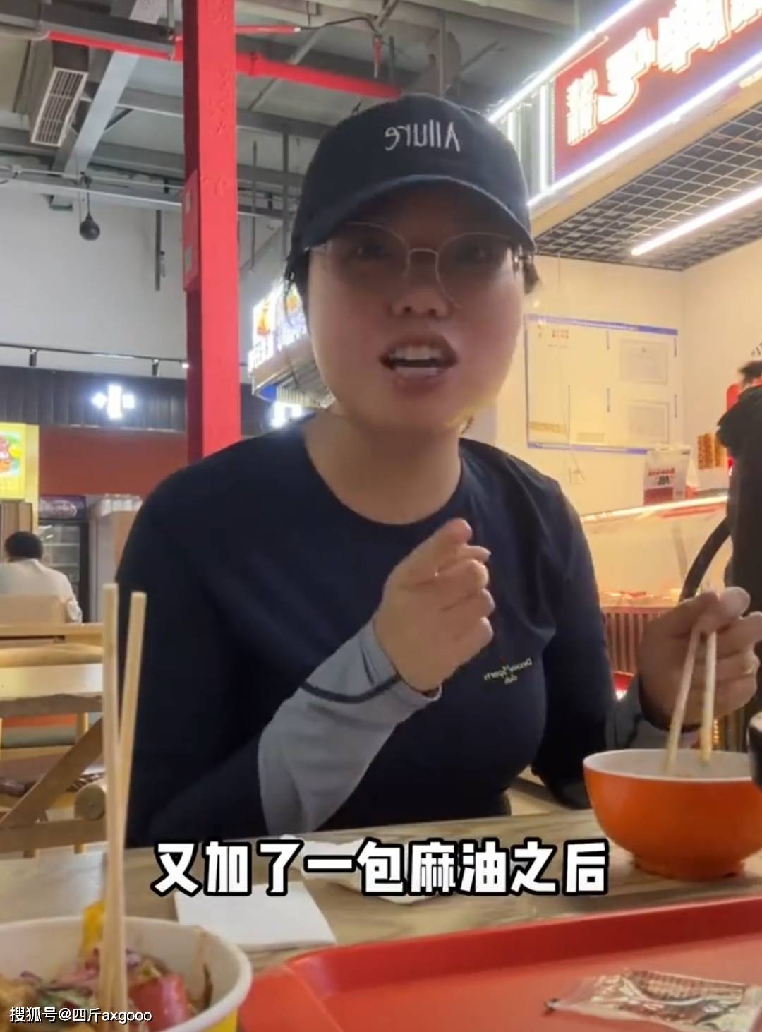 在米线上桌之后,李雪琴特意强调要多加麻油。