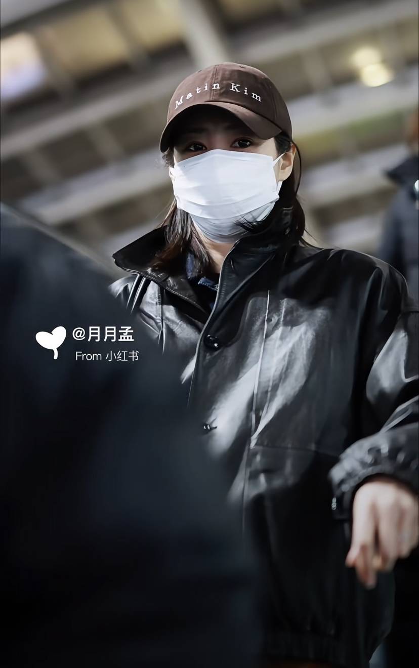 李纯双手插兜,有一种随性和自在的美。她穿黑色皮衣、直筒阔腿裤,简单又帅气的打扮好养眼。