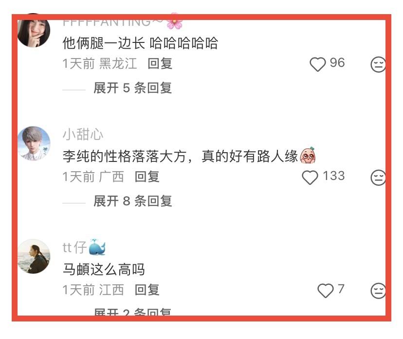 更有网友发现,虽然马頔比李纯高了一个头,但是两个人的双腿却一样长。不得不说李纯的身材比例真是好,舞蹈演员出身、这比例简直无敌了。