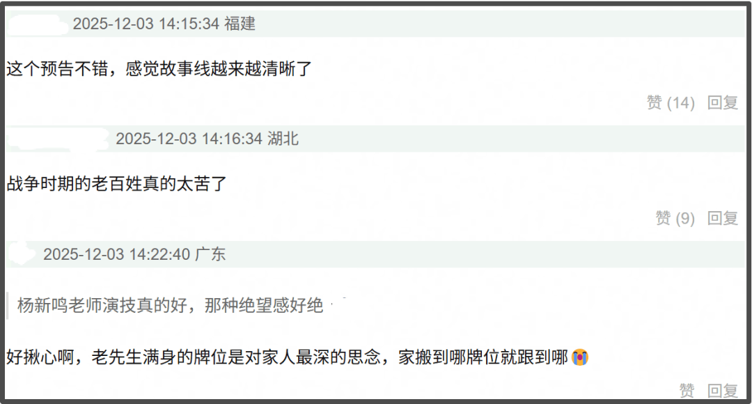 预告中,许多看似平平无奇的话语,却包含着值得深思的含义。小人物的守家之战,让人看得既心酸又热血。那是战争时代百姓的命运,有着最真实的苦与泪。一个又一个被摧毁的家园,让怀揣着新仇旧恨的百姓下定决心与日本人殊死一搏,清晰的故事线看得观众既觉得揪心,又觉得很燃。