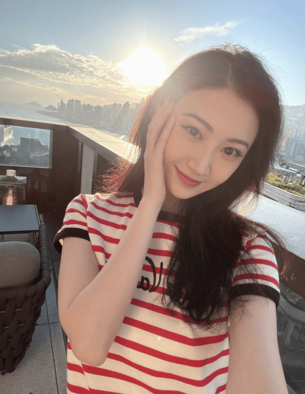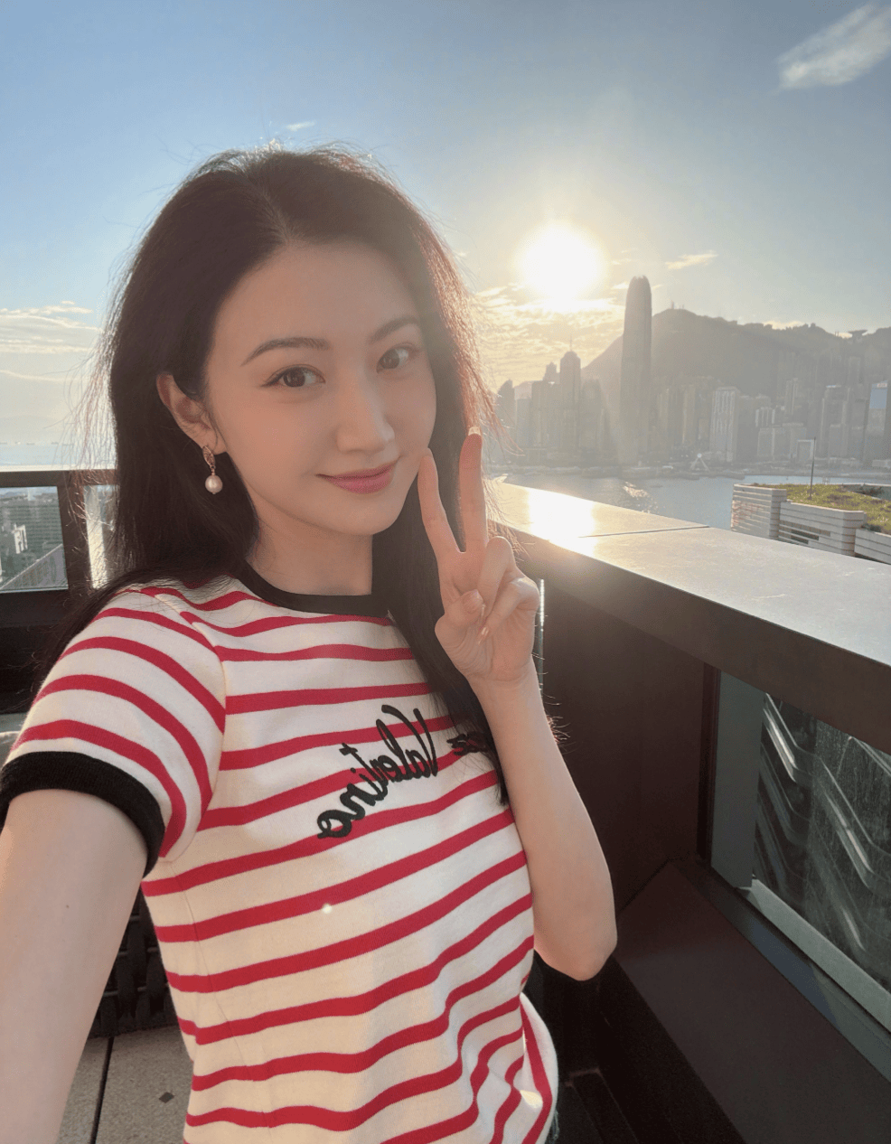 景甜左手轻抬至脸颊旁,落日余晖洒在她身上。