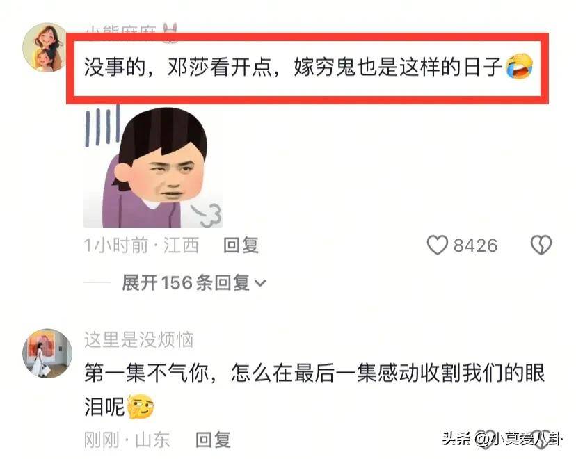 有人建议邓莎学会权衡取舍,也有过来人感叹:"婚姻选择本质都是围城,无论家境贫富"。路行的言行似乎在暗示:"你在我这里得到的,远胜你独自打拼的收获,不该再有怨言"。