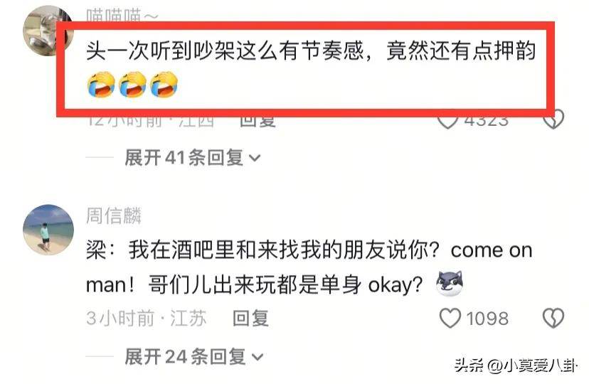 若说邓莎夫妇是沉寂的深潭,那么何美延与TSong梁老师则如两簇跃动火焰。这对说唱伴侣的相处充满戏剧张力,连阅历丰富的papi酱都笑得不能自已。