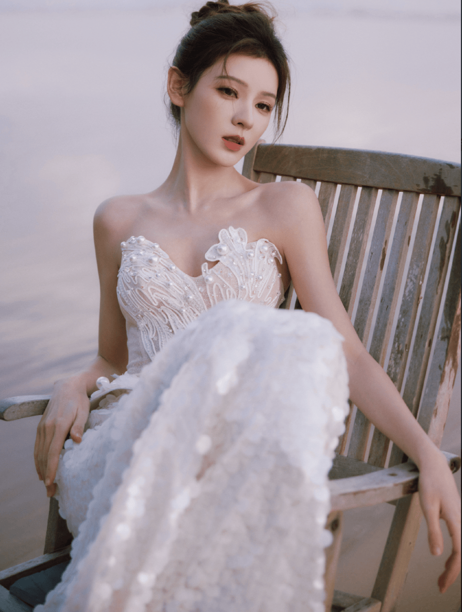 张予曦白纱轻盈舒展,自由浪漫扑面而来。