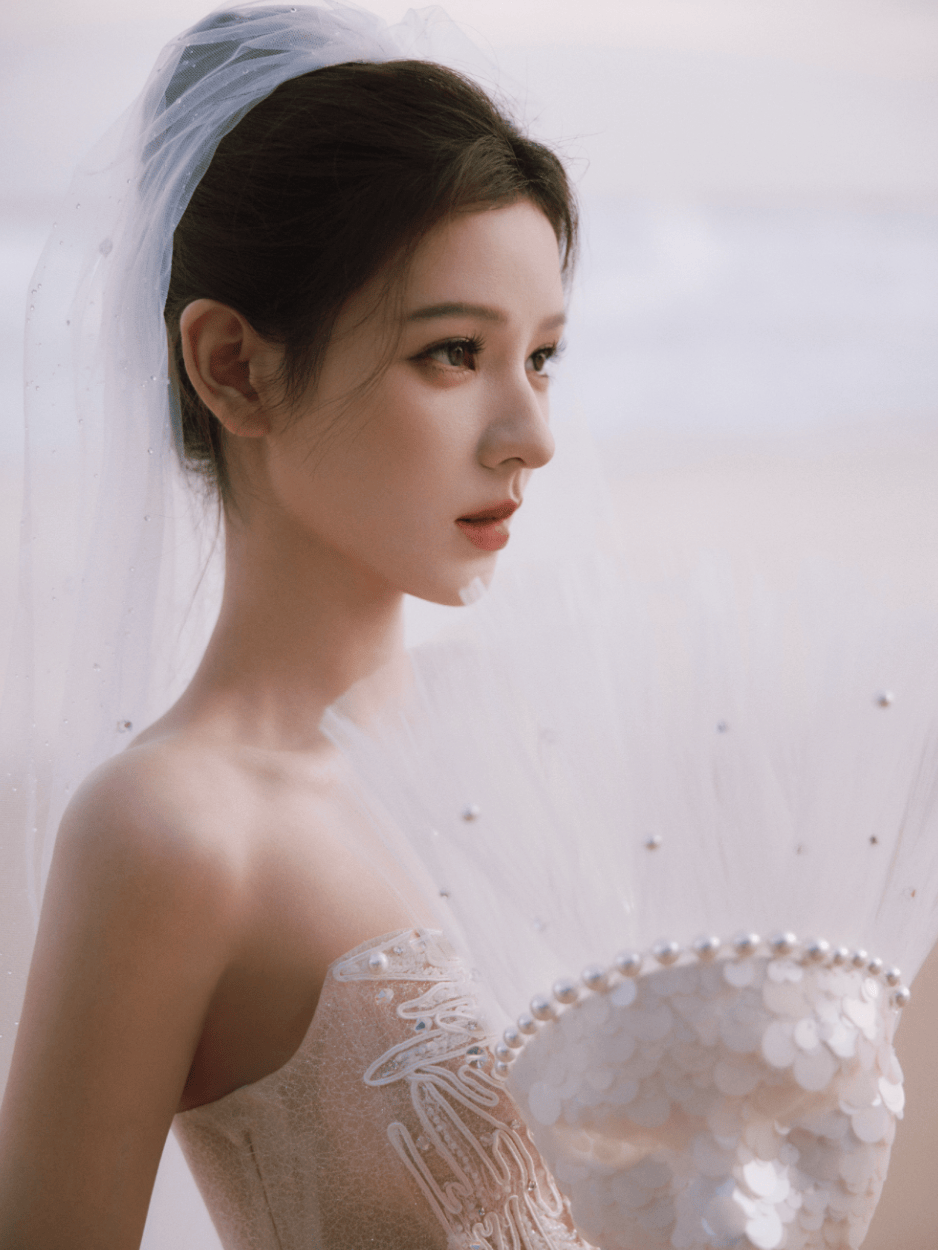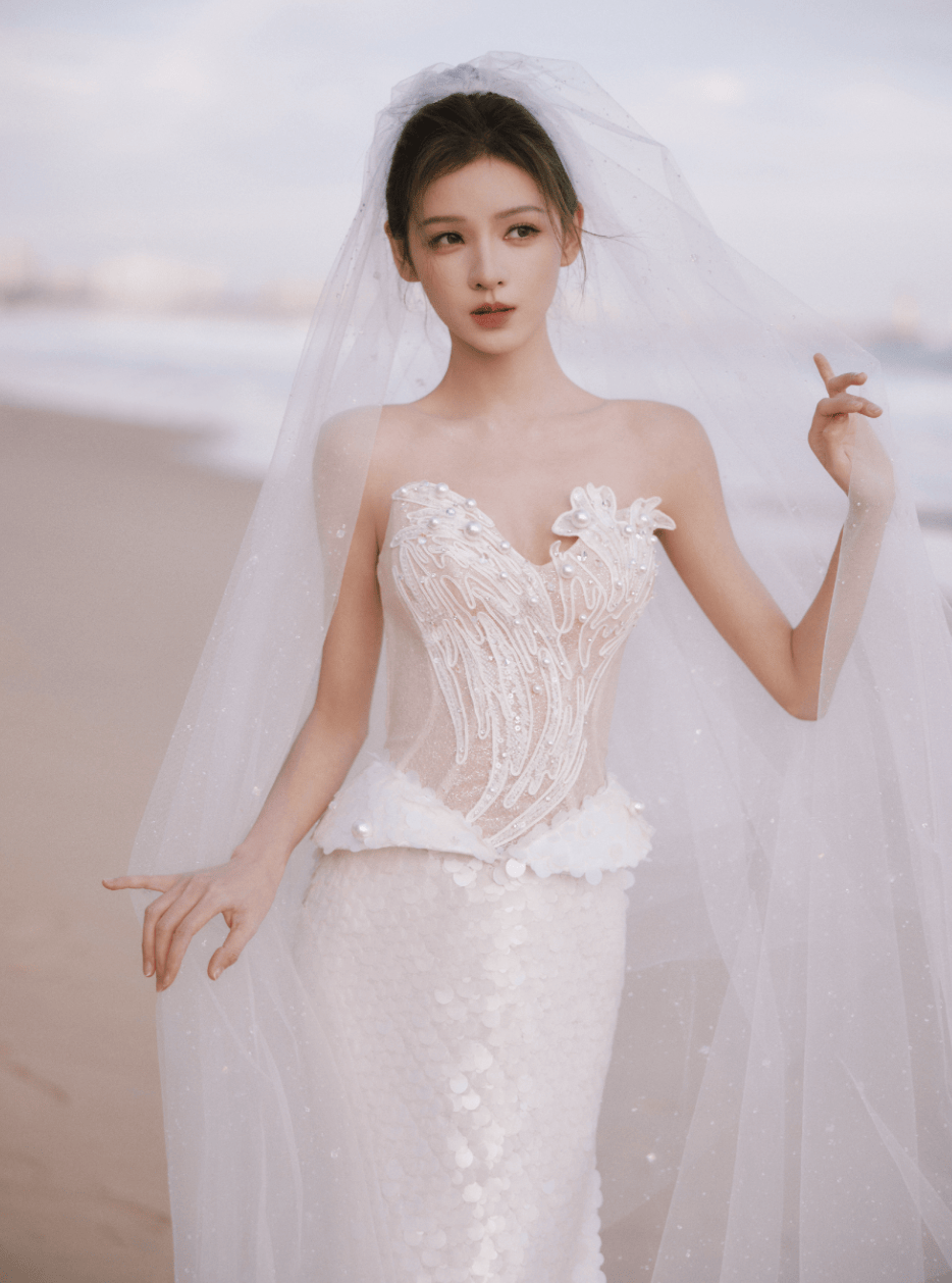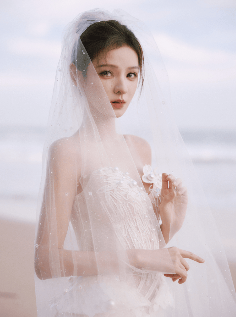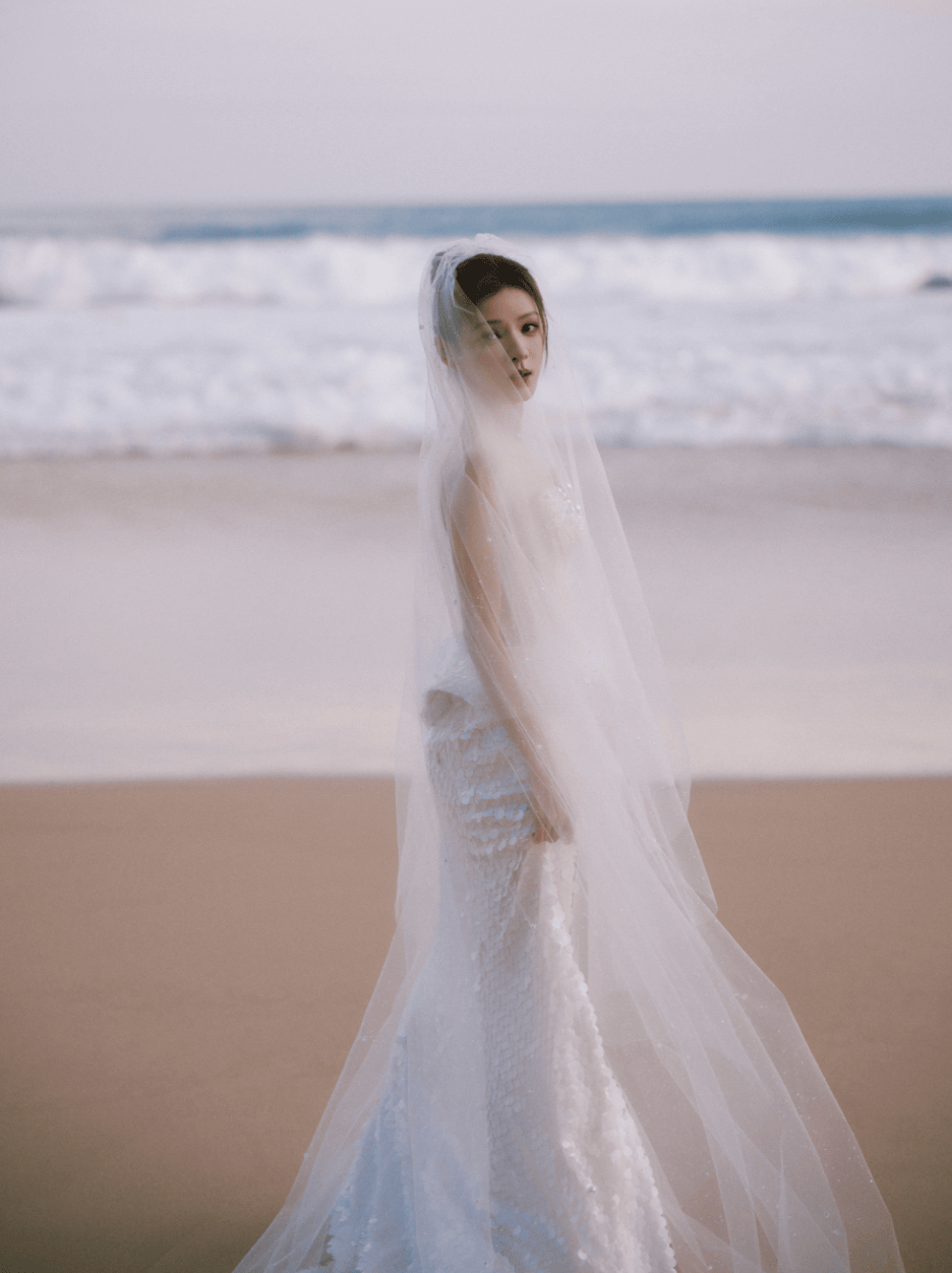 张予曦海边婚纱造型松弛又浪漫 头纱随海风轻扬超动人