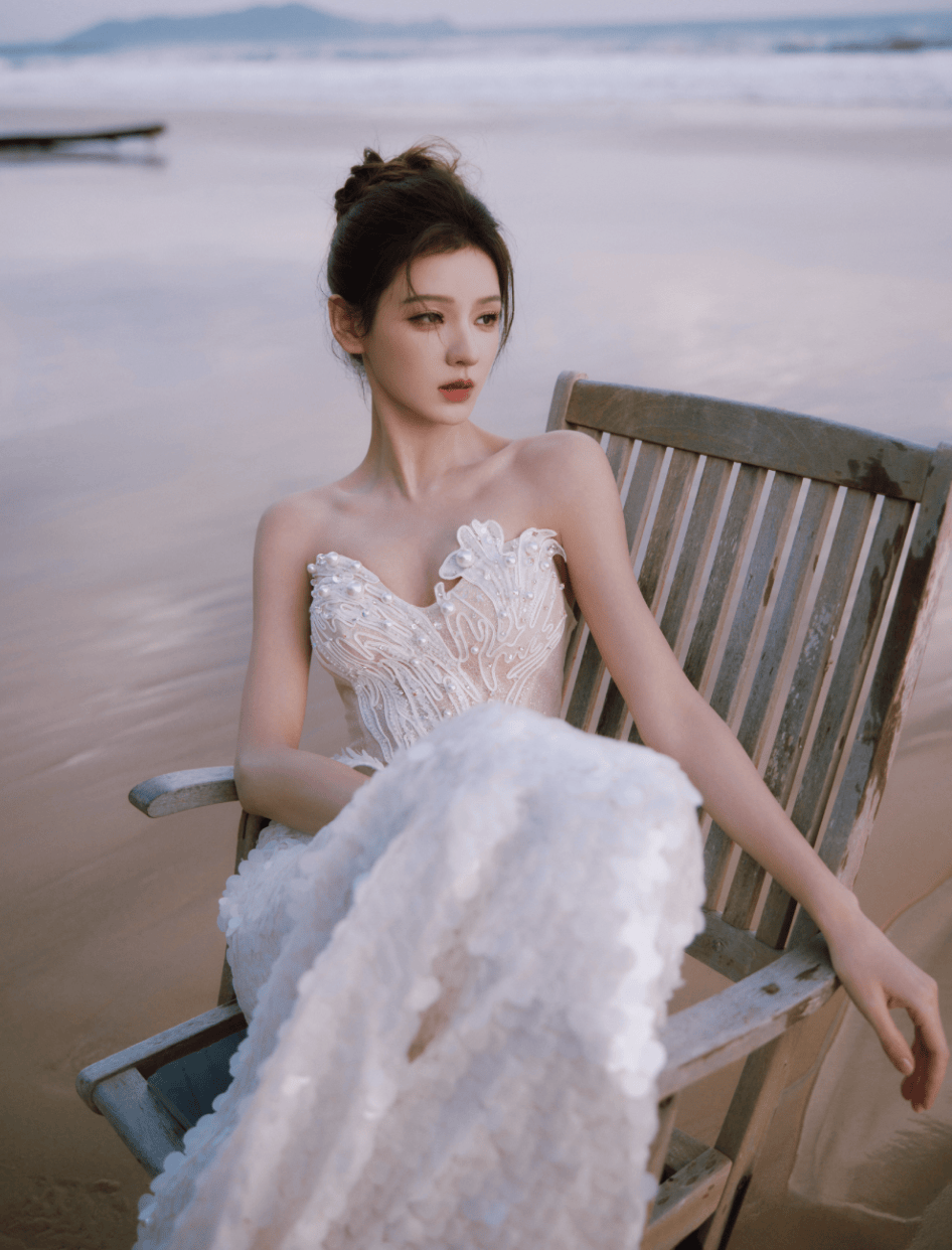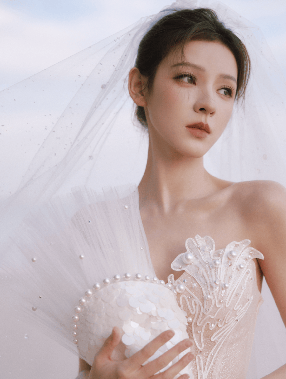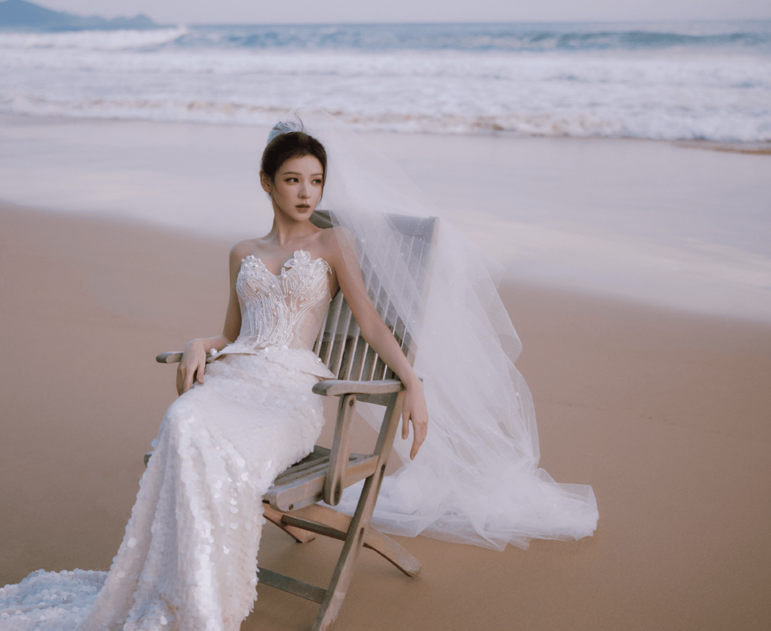 张予曦海边婚纱造型松弛又浪漫 头纱随海风轻扬超动人