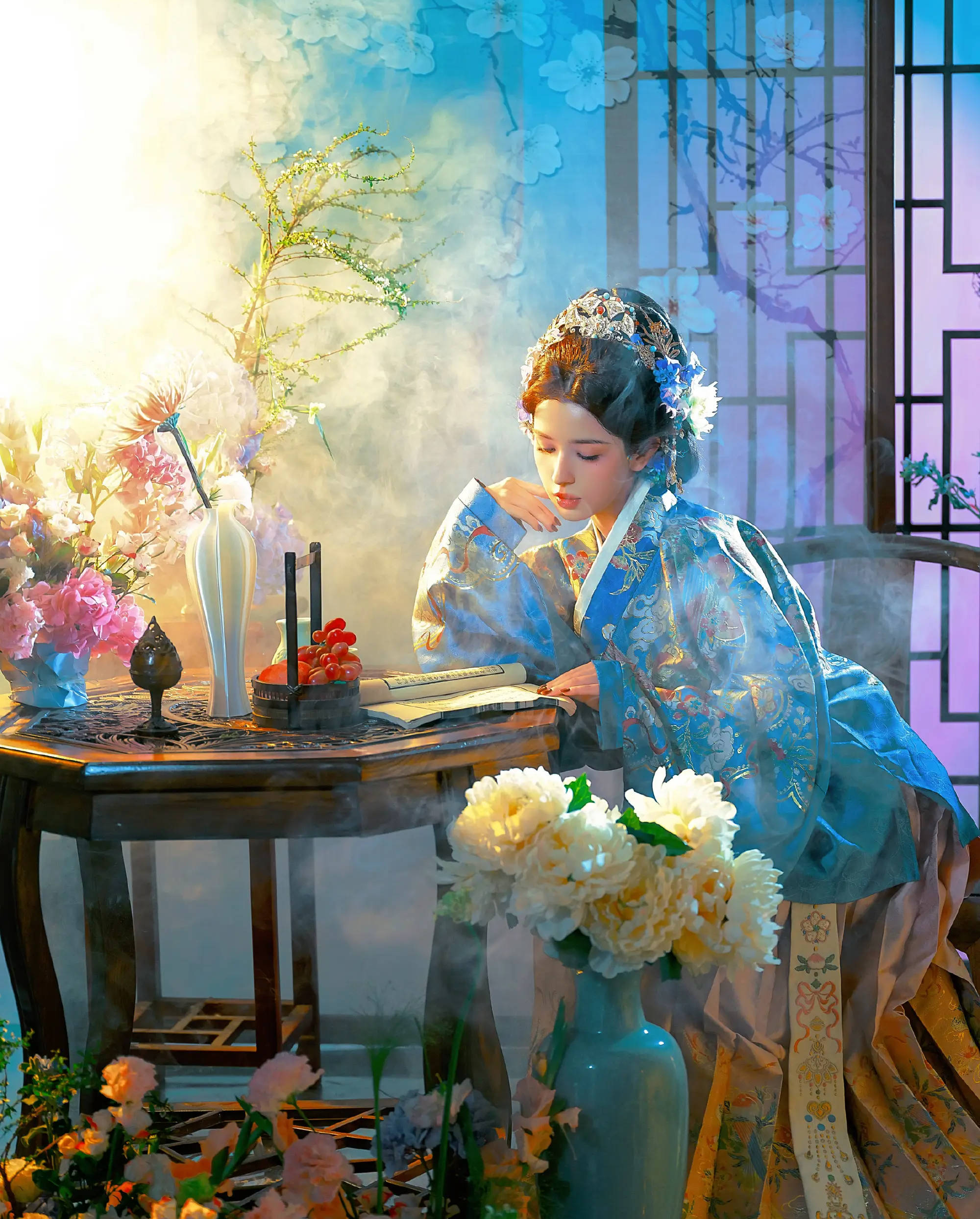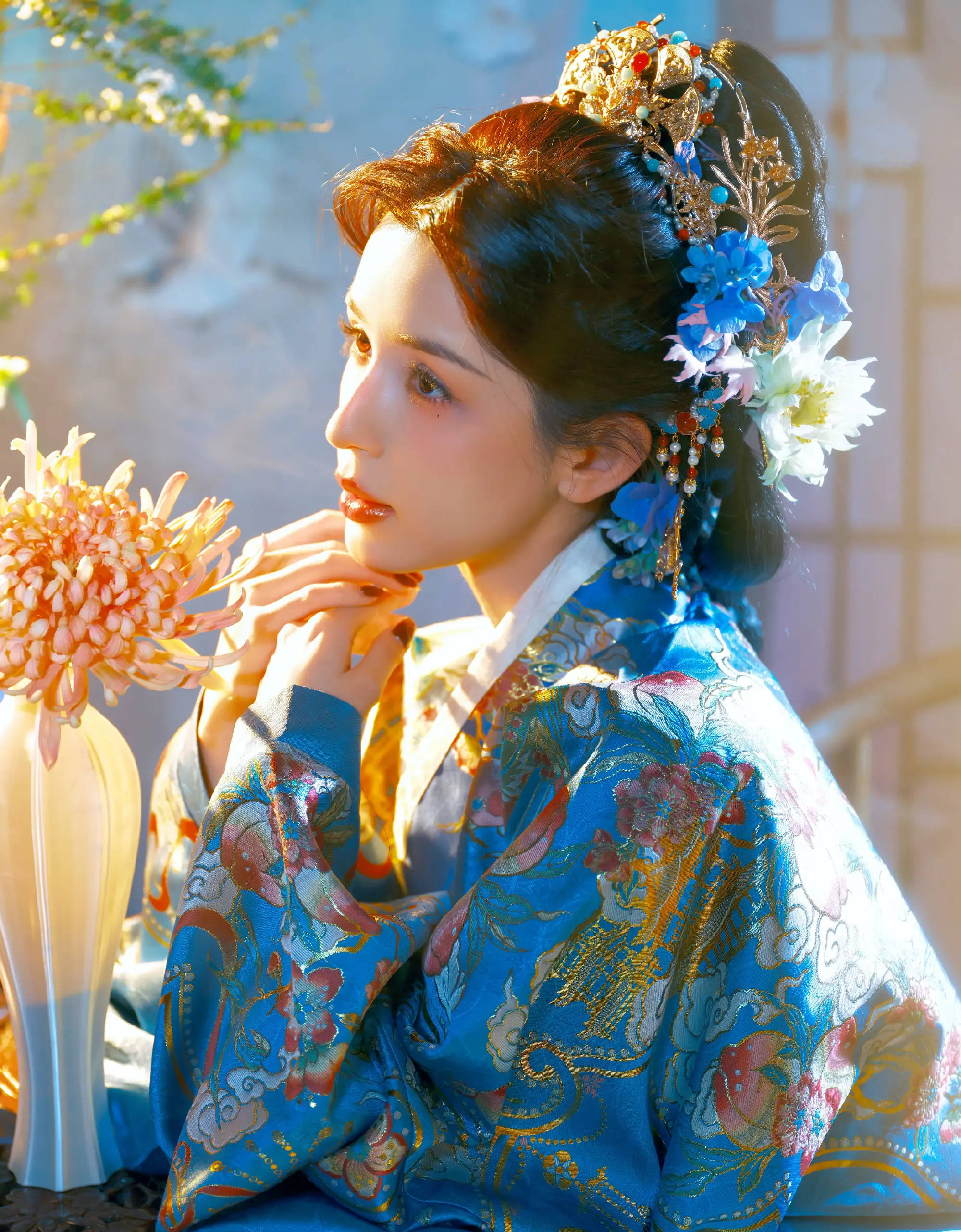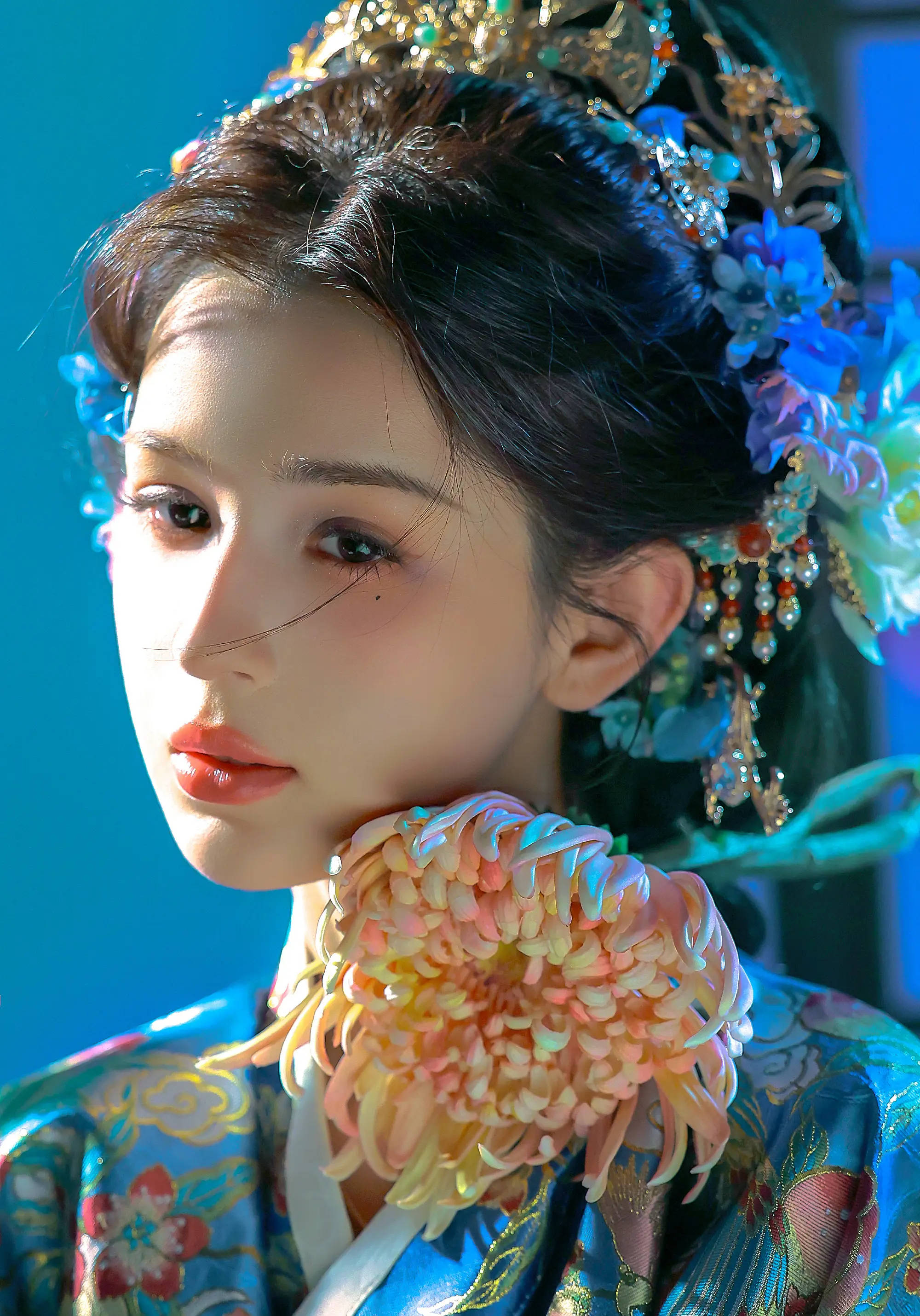 搜狐娱乐讯 12月5日,哈妮克孜一组古风照片释出,头戴簪花身穿一身蓝色古装完美诠释异域风情。