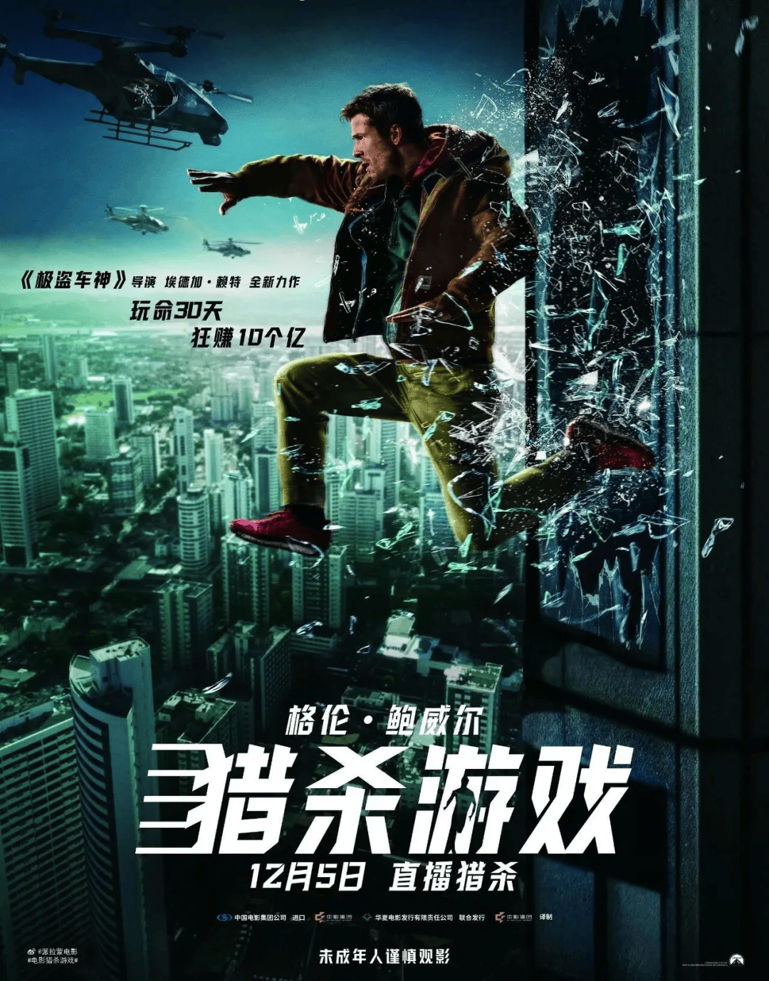 好莱坞惊悚动作大片《猎杀游戏》,12月5日正式登陆国内影院!由《极盗车神》导演埃德加·赖特操刀,格伦·鲍威尔、乔什·布洛林领衔的年度动作惊悚大片,即将引爆银幕!
