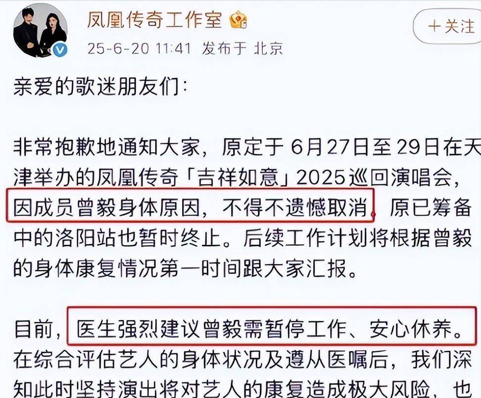 这次闹得挺严重的,结果也算是糟糕透了。不出多久,凤凰传奇团队就打出“曾毅身体不适”的借口,紧急喊停了后续的几场演出。