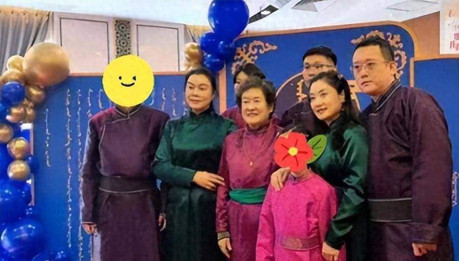 坐在她身旁的,是她的丈夫徐明朝,这位在商界挺有名气的演艺公司老板,此刻也不再那么“霸总”十足,换上了一身紫色的蒙古袍,还特意戴了和玲花一样的“情侣帽”,微微侧着身子往妻子女儿那边靠,尽显温情。
