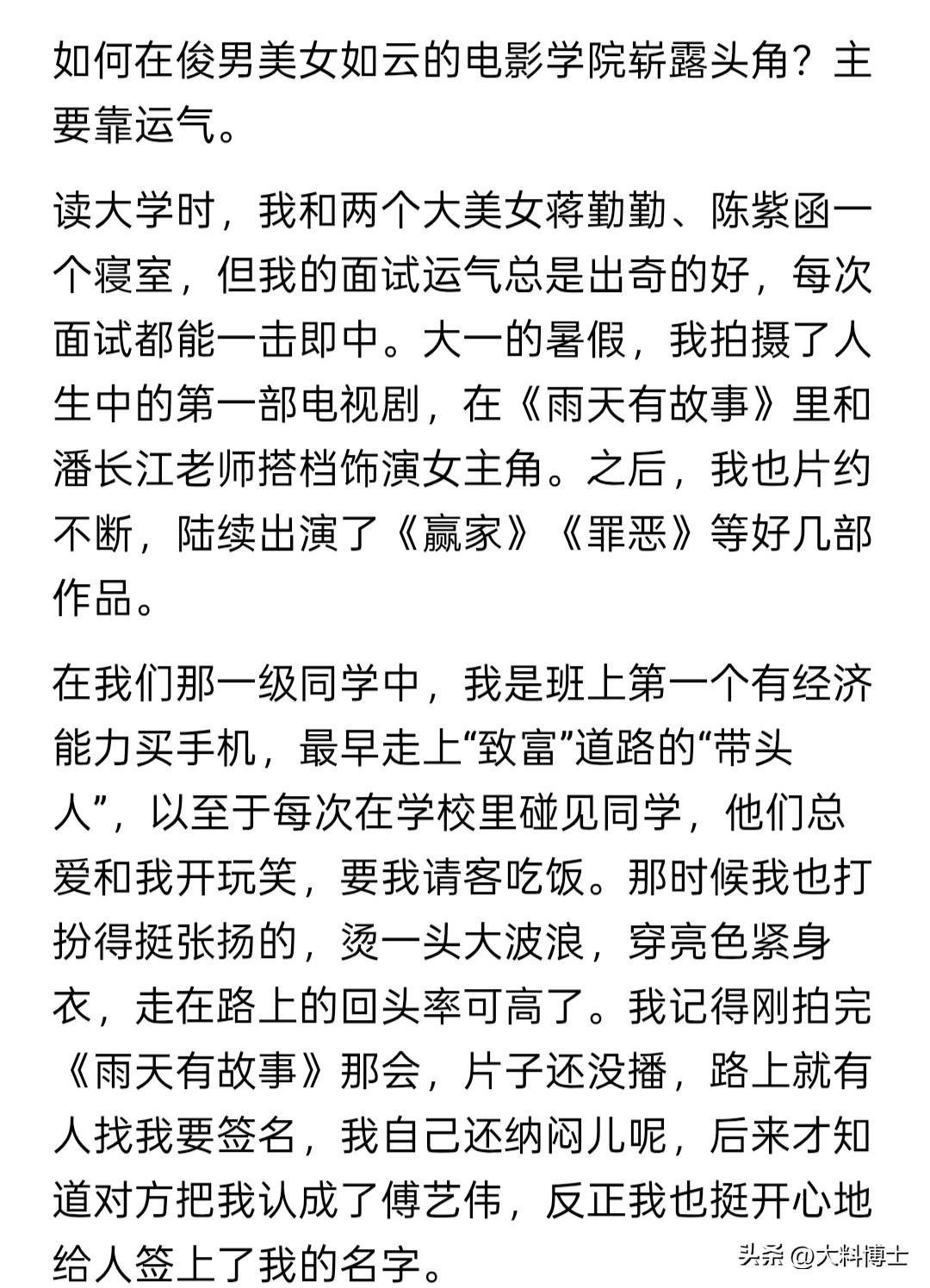 在一篇文章中,金巧巧谈到自己当初为什么从美女如云的北电脱颖而出,金巧巧毫不虚伪做作,称自己主要是运气好。