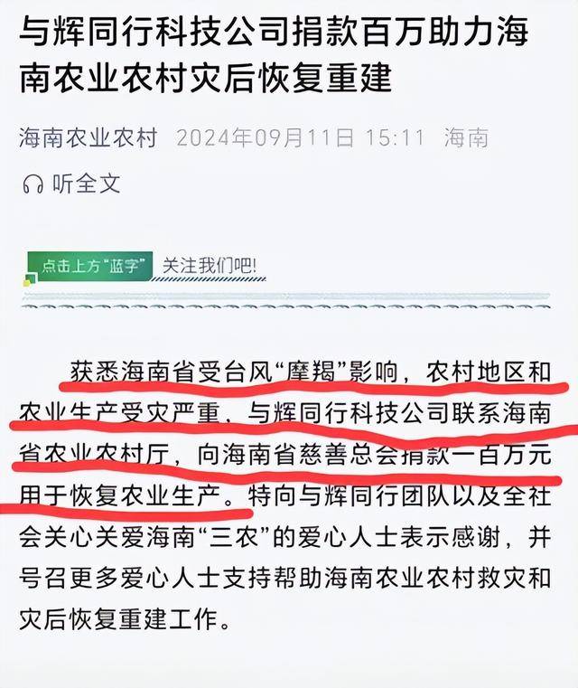 如果不是海南农业农村部门的一纸官方报道,外界根本无从得知,董宇辉在第一时间就已经默默划拨了100万元用于当地的灾后恢复。