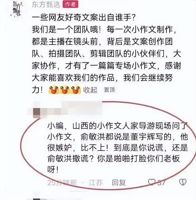 要知道,在此之前,无论是外界认知还是俞敏洪的公开暗示,董宇辉的文案才华都是公司的核心卖点,小编的这一举动,被视为对董宇辉才华的轻视和对他个人价值的背刺。