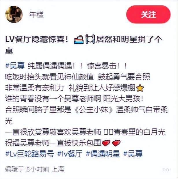 真没想到,曾经红透半边天的吴尊,现在跑到上海一家LV餐厅吃饭,还得跟陌生人拼桌。