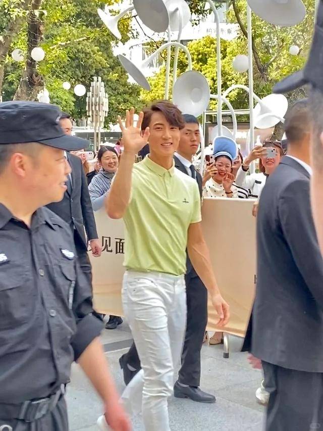 每当遇到粉丝要拍照时,他都毫不犹豫的同意,没一点架子。