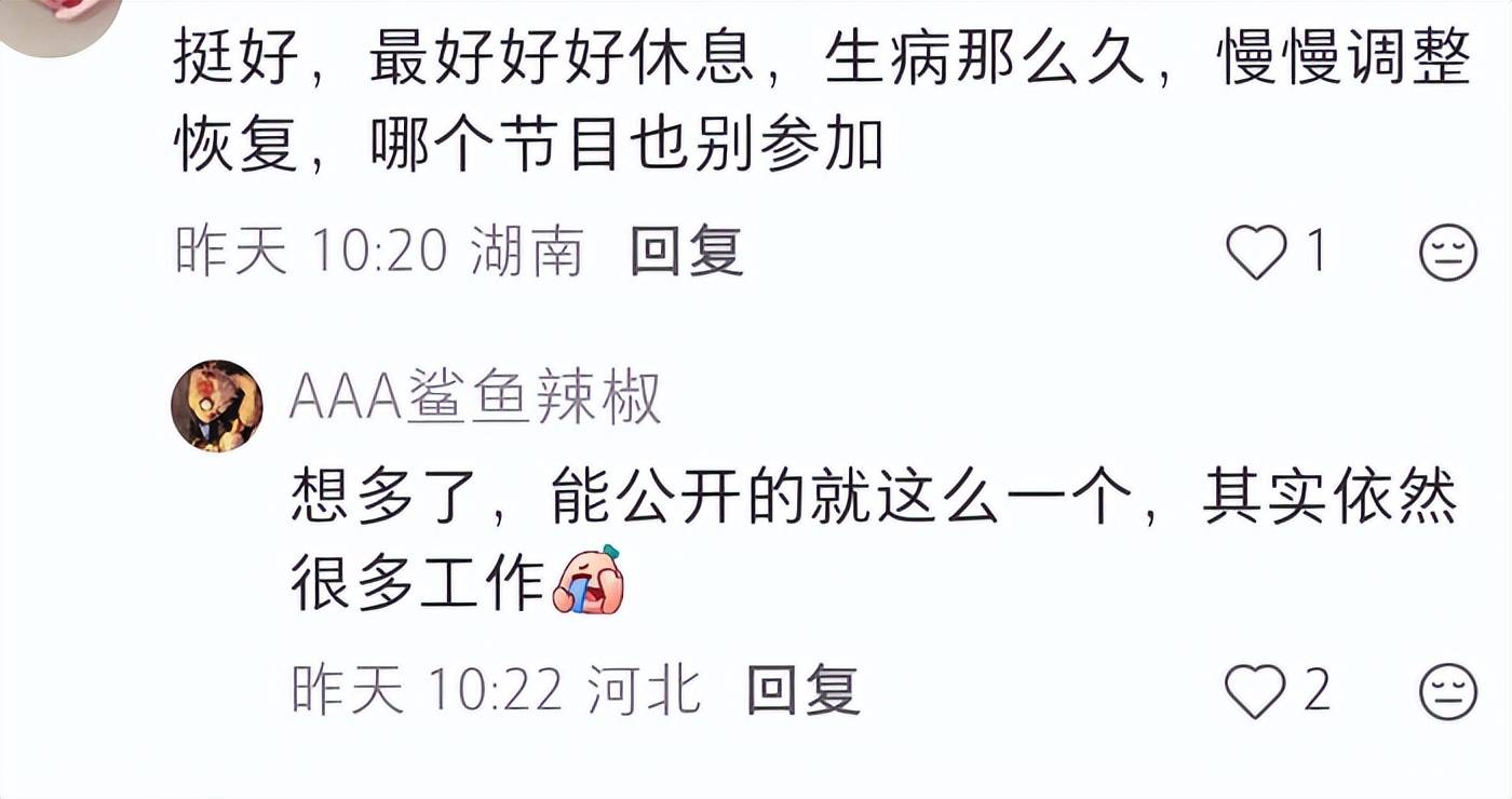她最新一个月的行程图上也没有拍戏的行程,疑似是遭遇资源降级,粉丝还安慰她,觉得她是该好好休息,调整状态。