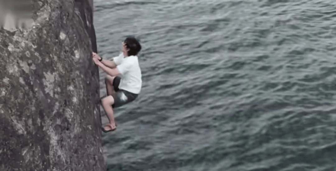 在攀爬到一定高处的时候,王一博说“哦,不不不”。应该是不好找到发力点和攀爬点了。然后在继续往上攀岩的时候,他因为意外直接落水了。