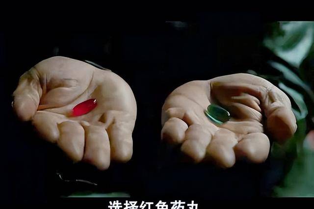 《黑客帝国》里有个红蓝药丸的隐喻,红色药丸代表看清真相的痛苦,蓝色药丸代表沉浸虚拟的麻木。