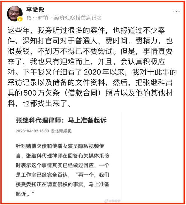 然而后来媒体立刻上传了张继科高达500万的借款合同以及其他材料,让张继科彻底无法辩驳。