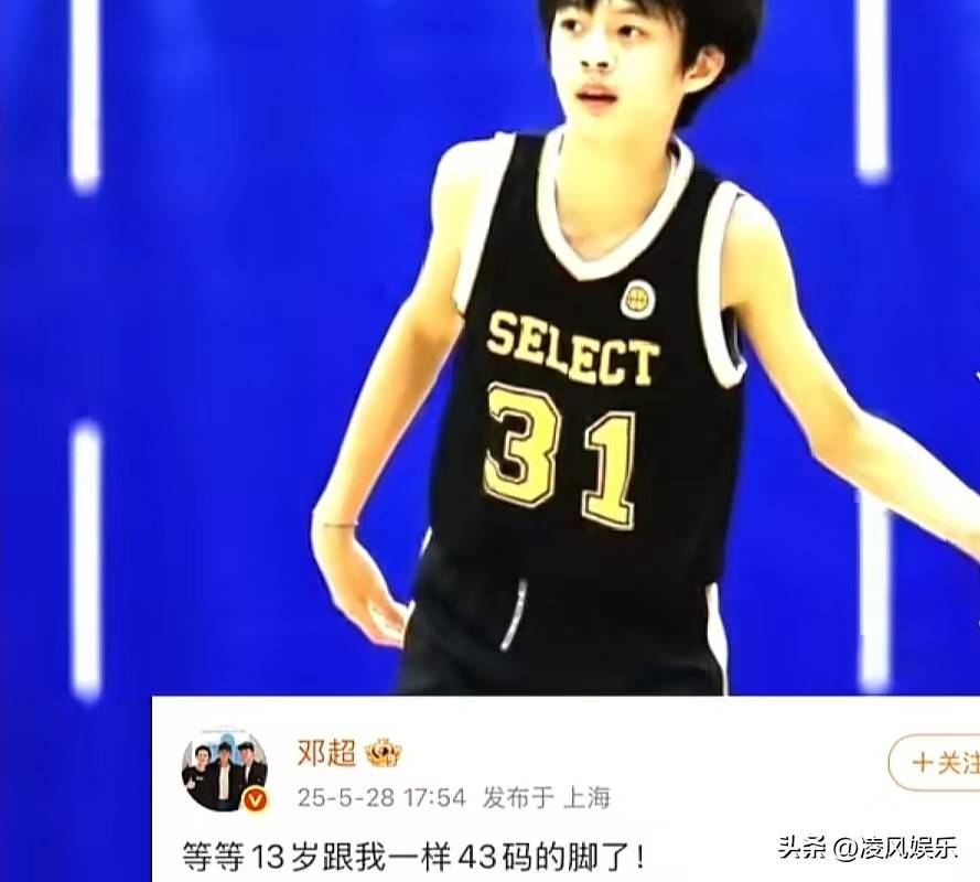 还记得邓超曾经发过一条微博,说等等13岁就已经43码的脚了,
