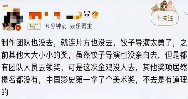 从今年11月份的金鸡奖就可以看出,饺子的精神内核仍然是非常坚定。