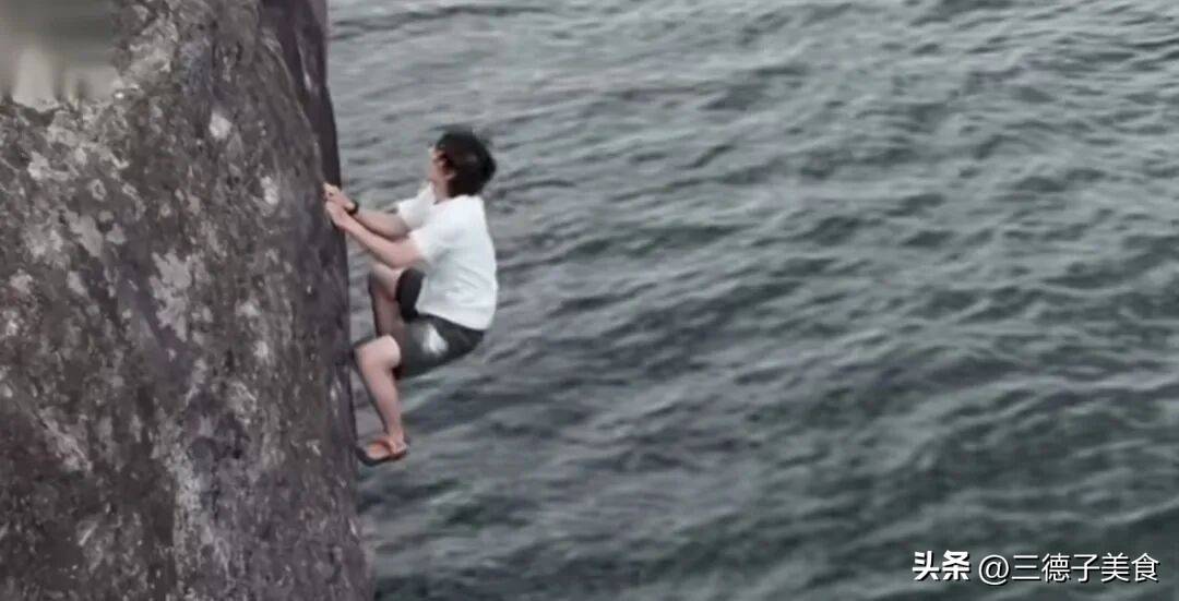 开头一段,他动作还算流畅,手指抠着岩缝,脚尖寻找着支点,一步一步,像只谨慎的壁虎。可随着高度攀升,来到了接近四米的地方,麻烦来了——岩壁变得湿润,手脚能借力的地方越来越少。镜头拉近,能清晰看到他紧抿的嘴唇和努力保持镇静的眼神,气氛紧张得仿佛能拧出水来。就在大家屏住呼吸的瞬间,意外发生了。只见他手下一滑,身体瞬间失去平衡,一声“不!”的惊呼划破空气,整个人向后跌去,“扑通”一声落进了下方的水里。那一刻,估计屏幕前无数人的心也跟着“咯噔”一下沉了下去。