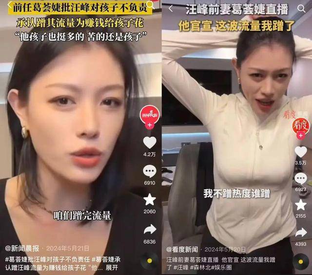有网友质疑葛荟婕长期依赖“汪峰前妻”的标签蹭流量,她曾公开承认,并表示:“我不蹭热度谁蹭”“老汪辛辛苦苦给我弄来的流量,为什么不蹭呢?咱们蹭完流量,赚点钱给孩子花,因为他现在孩子也挺多的。”
