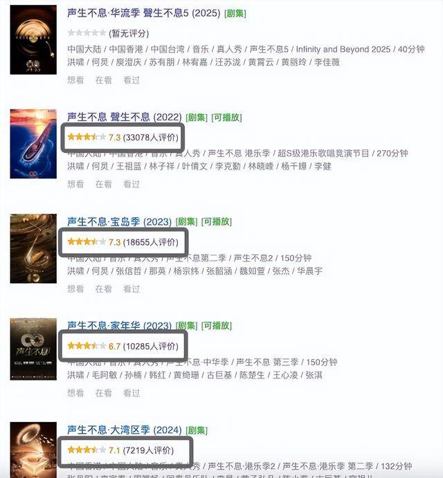 去翻豆瓣评分,港乐季8.2分,宝岛季7.5分,到“大湾区季”直接掉到6.8分。