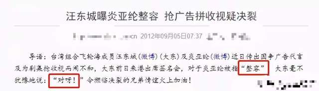 2012年,汪东城在签名会上直接帮炎亚纶承认了“整容”传闻,再次给本就频传不和的兄弟情谊火上浇了一把“油”。