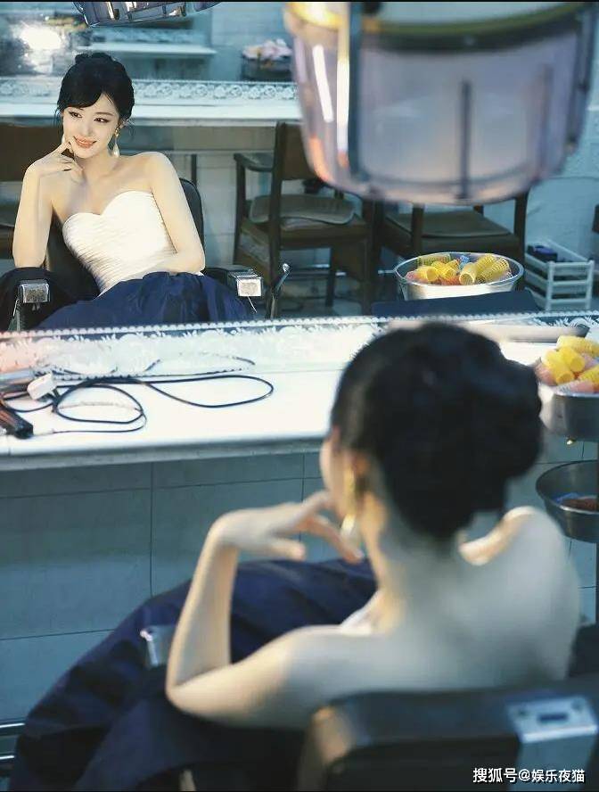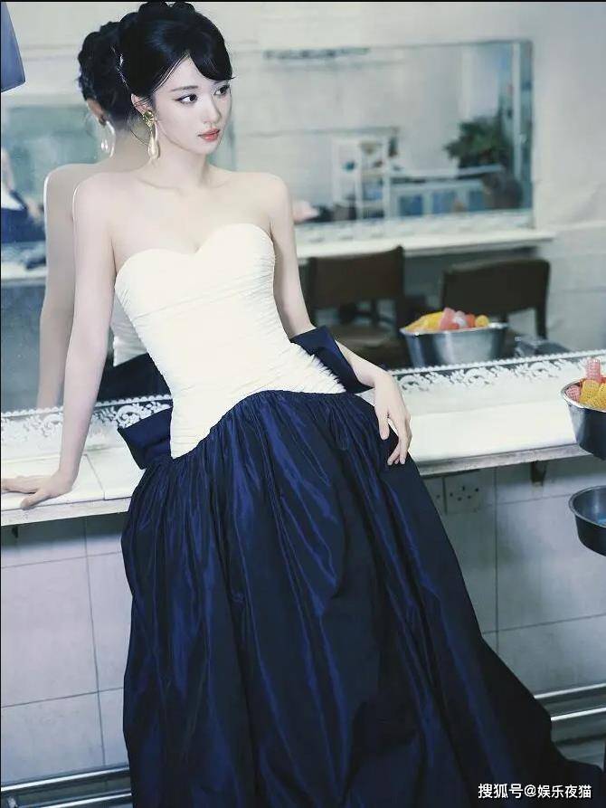 这次的造型中,王楚然穿了一套非常优雅的抹胸礼服,上身部分是白色紧身款式,下半身是宽松的深蓝色,这样的风格显得整个人相当优雅