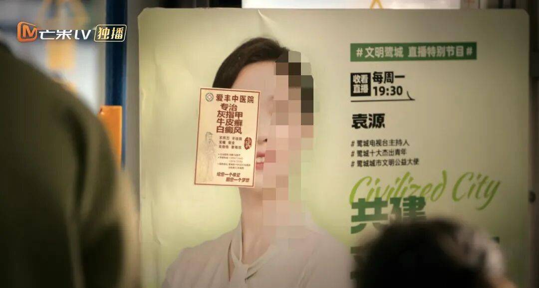 如果说上面的对话不知有多少被演员加工修改过,有几个镜头表现的小细节显然是编导的设计。比如女主被MCN邀请回国却被MCN公司高层把冰冷现实拍在脸上,坐在回家的公交车上灰心的她突然看到“人生赢家”王佳佳的公益宣传被贴半脸小广告,当场忍俊不禁。这一幕既缓解了女主自踏错一步后一直在人生落落落落里受挫的憋屈,也隐隐帮女主抛弃一直以来的女主播包袱彻底奔向新生,更给一直站在女主视角上不爽的观众一个小小的情感宣泄口,很有趣也很有效率。