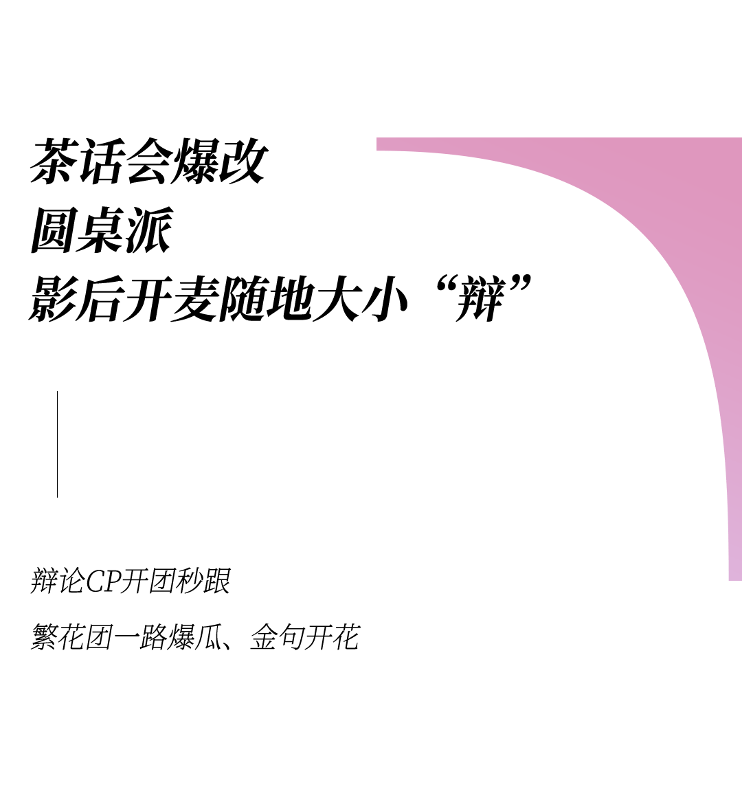 繁花影后团的“团魂”,是形散神不散。哪怕看起来已经一个团乱成两锅粥,也依旧投注百分百的真情实感各抒己见——无论什么话题,都能被姐姐们热情接纳且讨论,绝不让任何一个辩题遇冷。