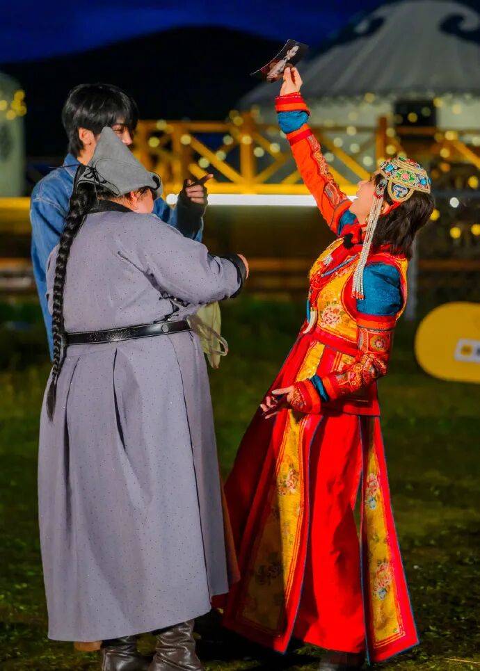 另一位真人秀新手刘嘉玲,俨然化身风景玩家。她说,“我一直觉得女人是大地之母,非常有力量的”,所以在草原里逢人说你好,逢羊也一视同仁,恨不能和蒙古包里的老乡结为异父异母的亲姐妹。