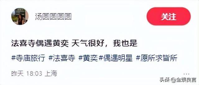 而近日,又有网友在上海一座寺庙偶遇了黄奕。