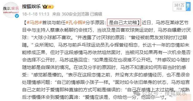 马苏则说自己当时太幼稚,没经历过什么感情,且她不喜欢球类运动。