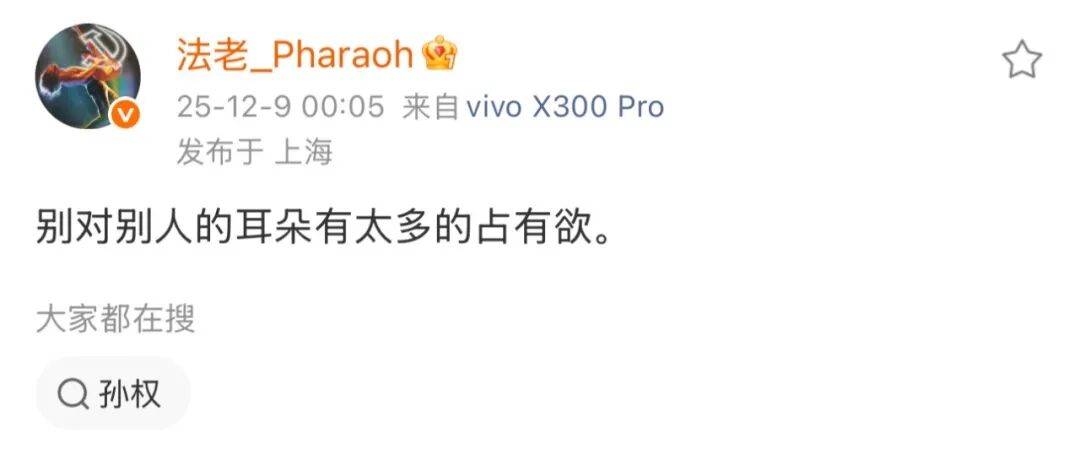 今天凌晨,法老发文:别对别人的耳朵有太多的占有欲。