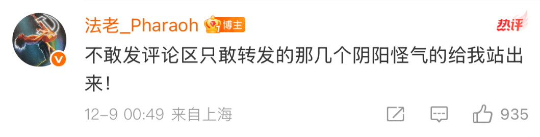 而法老,这次站出来发声了。