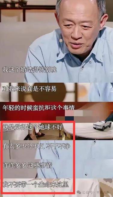 从绝对的不婚不育、和前任交往十年都不结婚,到花甲之年又结婚又生子……鲁豫问他态度的转变,他只说是一步一步发生的。