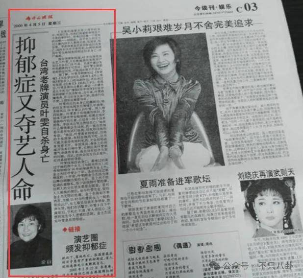 有新闻说,她是抑郁症+宫颈癌晚期不堪病痛折磨才决定自杀,但当年报纸刊登新闻时,只提到她是抑郁症自杀离世。